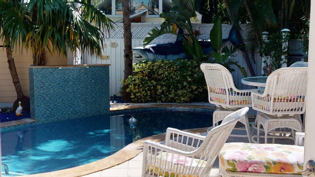 Historic charm meets modern comfort in this beautifully preserved 1930 Conch cottage nestled in Key West’s sought-after Historic Seaport district. This two-story, 2-bedroom, 2-bath home (approximately 1,463 sq ft) boasts classic Key West architecture – wood siding and a metal roof – along with inviting outdoor spaces including an open front porch and a private backyard oasis. Inside, airy living spaces feature hardwood and tile floors, a modern kitchen with granite countertops and stainless-steel appliances, and a flexible layout with a bedroom suite on each level for optimal privacy. The tropical back patio is ideal for relaxing or entertaining, complete with a heated swimming pool (plus a cascading waterfall), an outdoor shower, and lush landscaping behind a privacy fence. Practical comforts include a whole-house generator and a spacious storage shed, plus the coveted benefit of off-street parking – a rarity in Old Town. From this prime Old Town location, you can stroll to the Historic Seaport marina, local restaurants, boutiques, and the vibrant Duval Street nightlife. Whether you’re seeking a personal island retreat or a high-demand vacation rental, this unique property delivers an inviting blend of timeless island charm and excellent investment potential. Please note that pictures were taken before furniture and art were removed. Property is unfurnished.